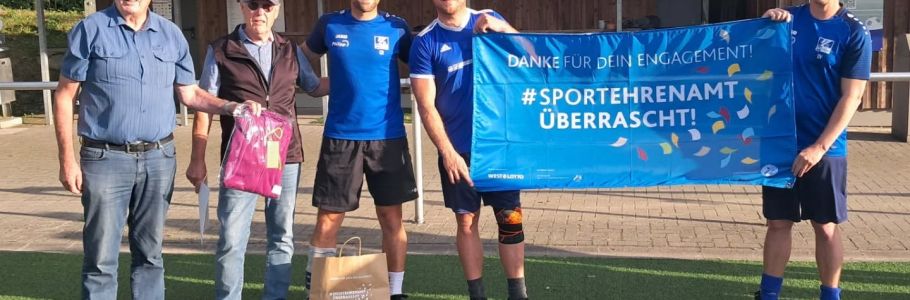 Werner Stappert und Peter Zimmermann vom Team Ehrenamt haben heute den Trainer der III. Mannschaft, Christopher „Tofa“ Knyn, im Rahmen der Aktion Ehrenamt überrascht geehrt. Tofa ist seit Jahren fester Bestandteil der III. Erst als Spieler und seit einigen Jahren als Trainer, der auch schon mal das Spieltagstrikot trägt.