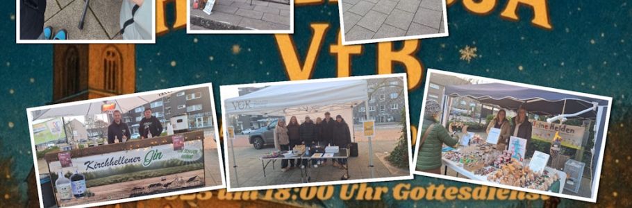 Die zweite Ausgabe des VfB-Weihnachtszaubers findet am morgigen Samstag, den 13. Dezember, statt. Der Adventszaubermarkt an der Kirche St. Johannes beginnt um 16 Uhr. Kirchhellener Kindergärten werden unter anderem Waffeln backen. Auch Annemaries Foodtruck wird an der Kirche stehen. Henning Rottmann und Julian Knipping vom „Kirchhellener Gin“ servieren ihren „Glüh-Gin“ Der Fußballgottesdienst in der Kirche beginnt um 18 Uhr.