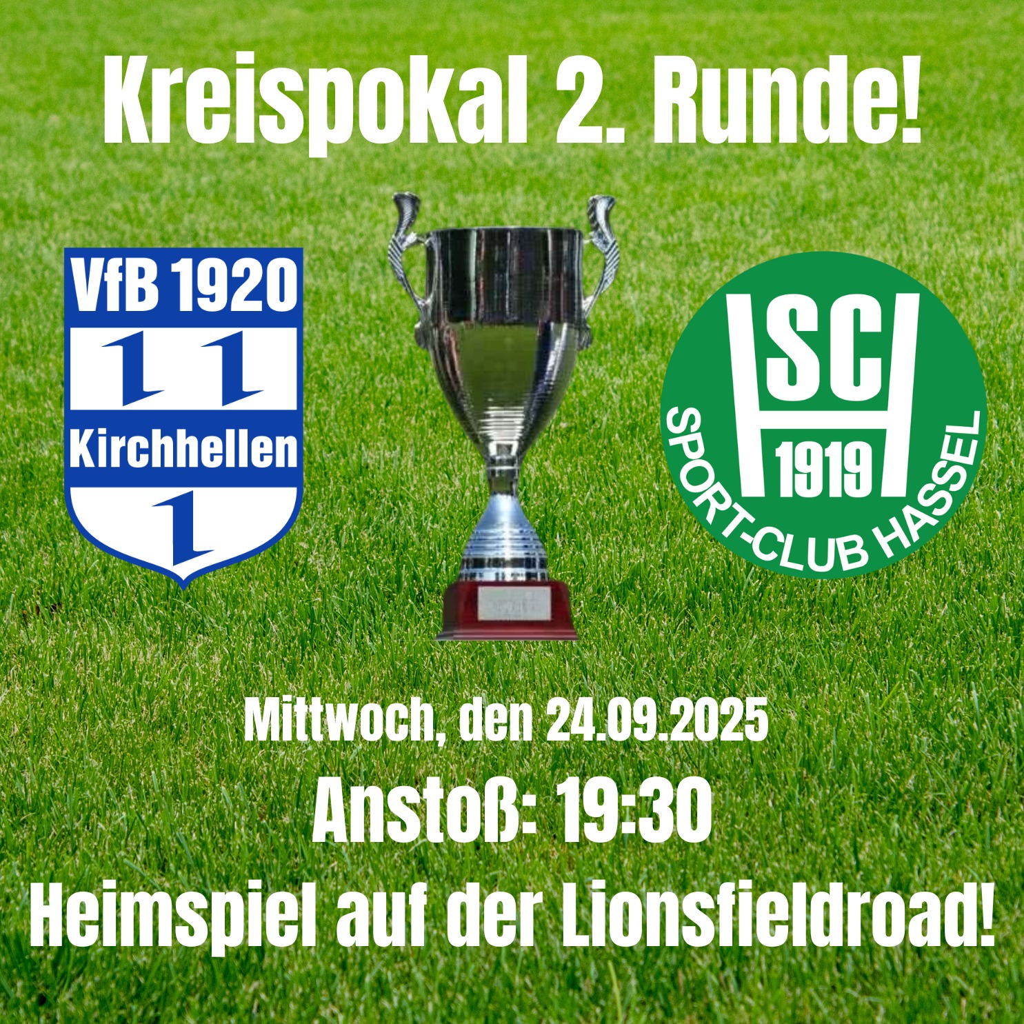 Am heutigen Mittwoch geht es dann im Pokal weiter: Nachdem der VfB endlich mal wieder die 1. Runde überstanden hat geht es heute gegen den Liganachbarn SC Hassel an der heimischen Lionsfieldroad. Anstoß ist um 19.30 Uhr!