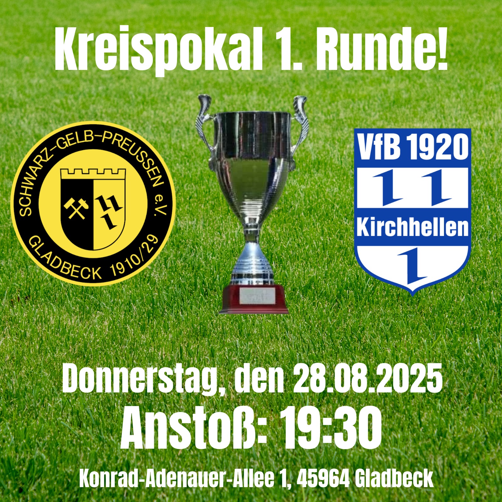Am Donnerstag startet der VfB dann auch in die 1. Runde des DFB-Pokals auf Kreisebene. Um 19.30 Uhr ist die Erste an der Konrad-Adenauer-Allee bei Preußen Gladbeck zu Gast. Die Gladbecker sind wie der VfB mit drei Siegen in die Kreisliga A gestartet. Es könnte ein heißes Duell werden.