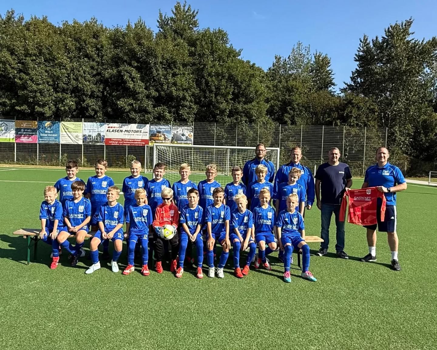 Bei bestem Fußballwetter stand gestern für unsere E4 das erste Saisonspiel auf dem Plan. Frisch ausgestattet mit neuen Trikots von der Firma Gaswart – ihrem kompetenten Partner für Heizungs- und Wärmetechnik in Privathaushalten und Firmengebäuden.